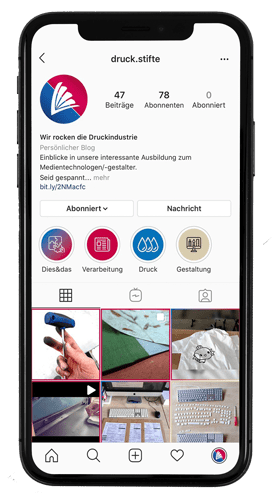 Anfang 2020 starteten unsere Auszubildenden mit dem Projekt „Instagram“. Die Azubis aus allen Abteilungen treffen sich in regelmäßigen Meetings. Ziel ist es, das Interesse für die Berufe Medientechnologe Druck und Druckweiterverarbeitung zu wecken. Mit neuen Azubis soll die Zukunft der Druckindustrie gesichert werden. Auf ihrem Instagram-Account werden mit mehreren Posts pro Woche die Berufe und deren Aufgaben auf eine interessante Art und Weise vorgestellt.